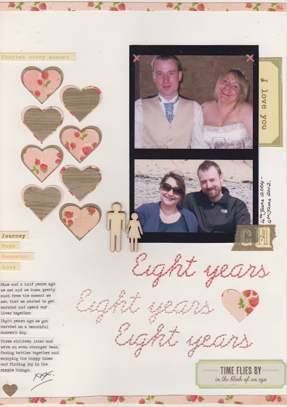 I chose three different shades of pink which matched the Crate patterned paper that I had picked for this page, which I made for our wedding anniversary which we celebrated earlier this week.